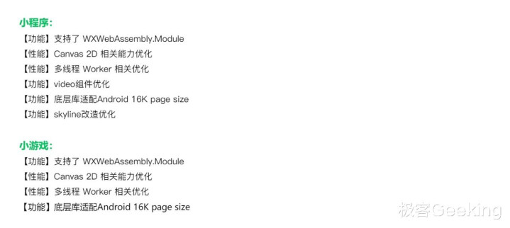 除了上述的功能变化之外,此次微信还带来了小程序和小游戏的性能和体验优化,具体如下: