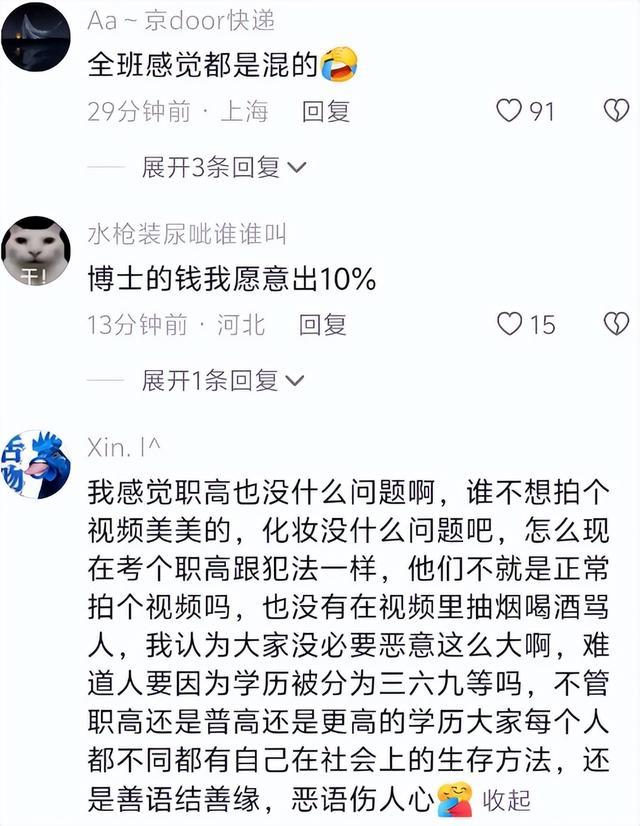 但也许是因为真的是被自己的职高身份给影响到了吗?网友们也都在纠结这个问题,凭什么职高长相一眼就能看得出来?说的也非常奇怪。