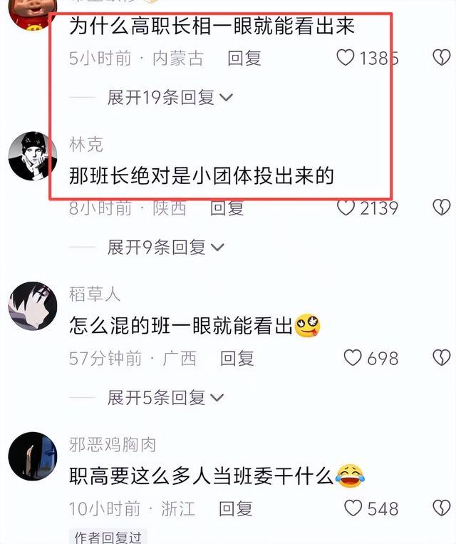 先是班长一出来网友们瞬间就感觉有点不对劲,这个女同学的面相或者是她化的妆,也许是她的造型,让人觉得似乎有那么一点职高味。再往下看呢。
